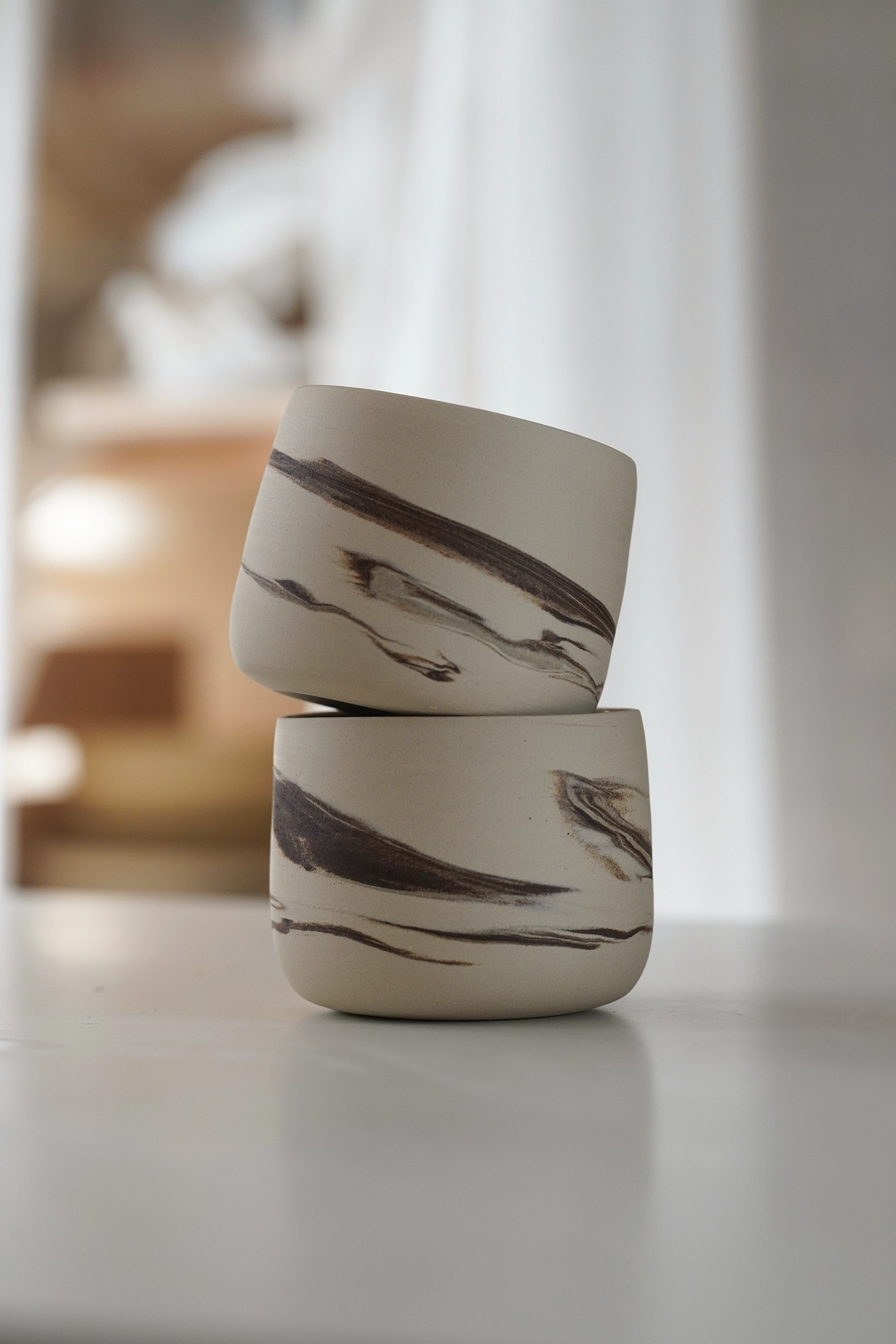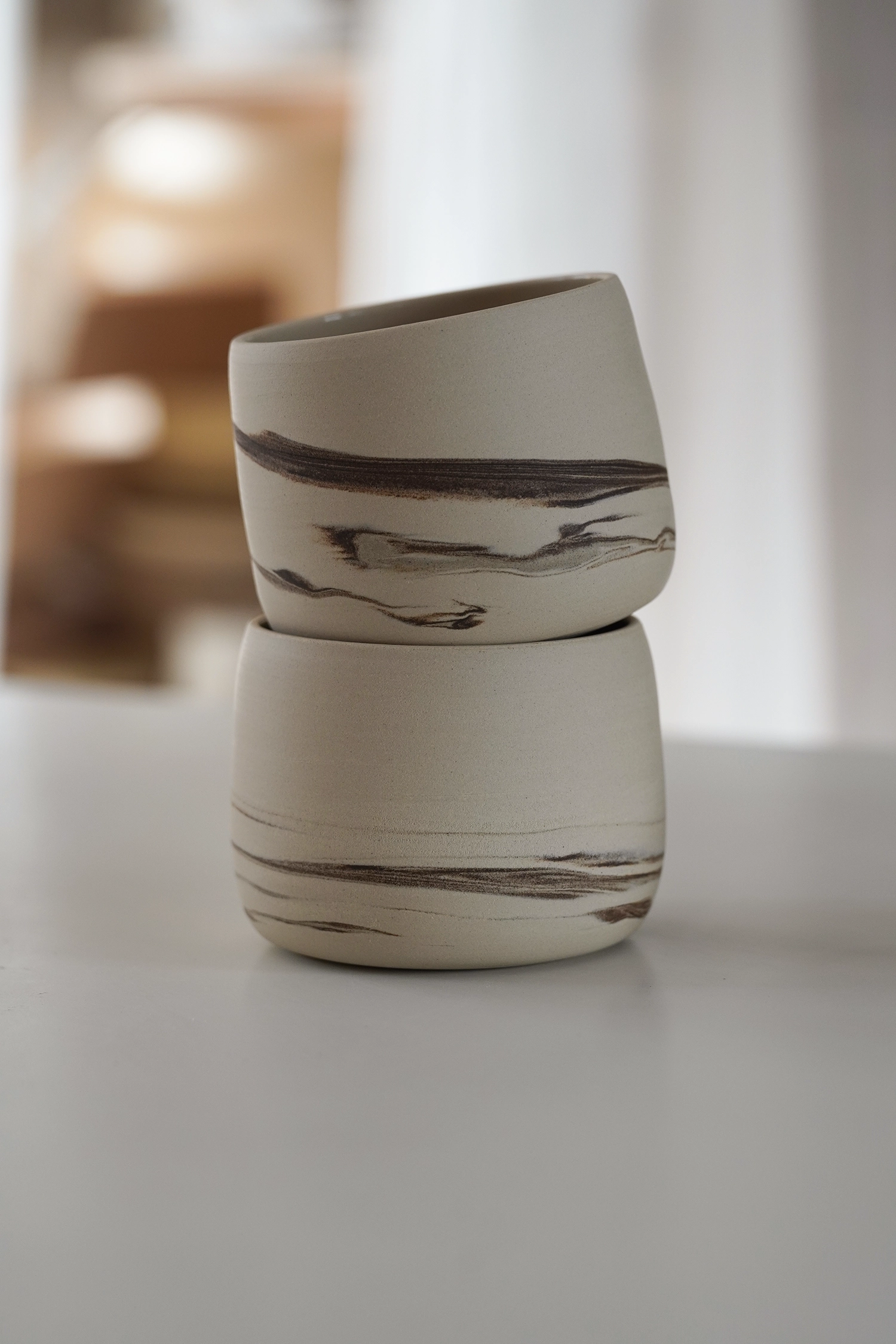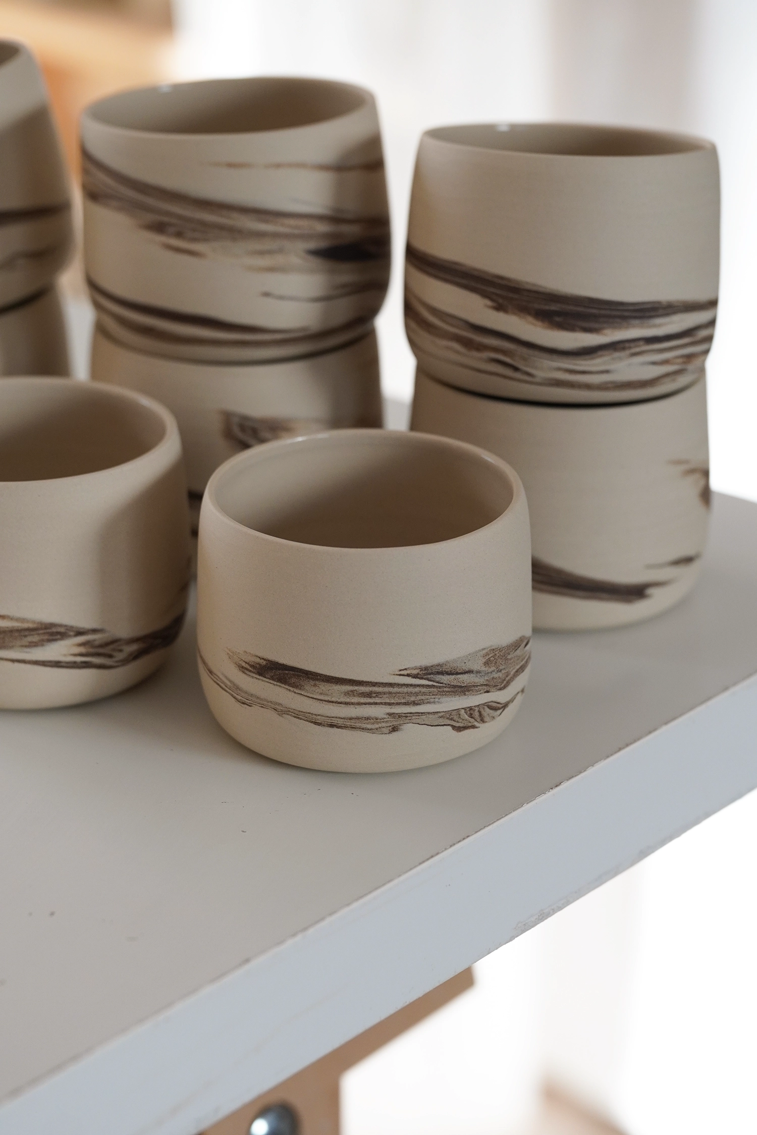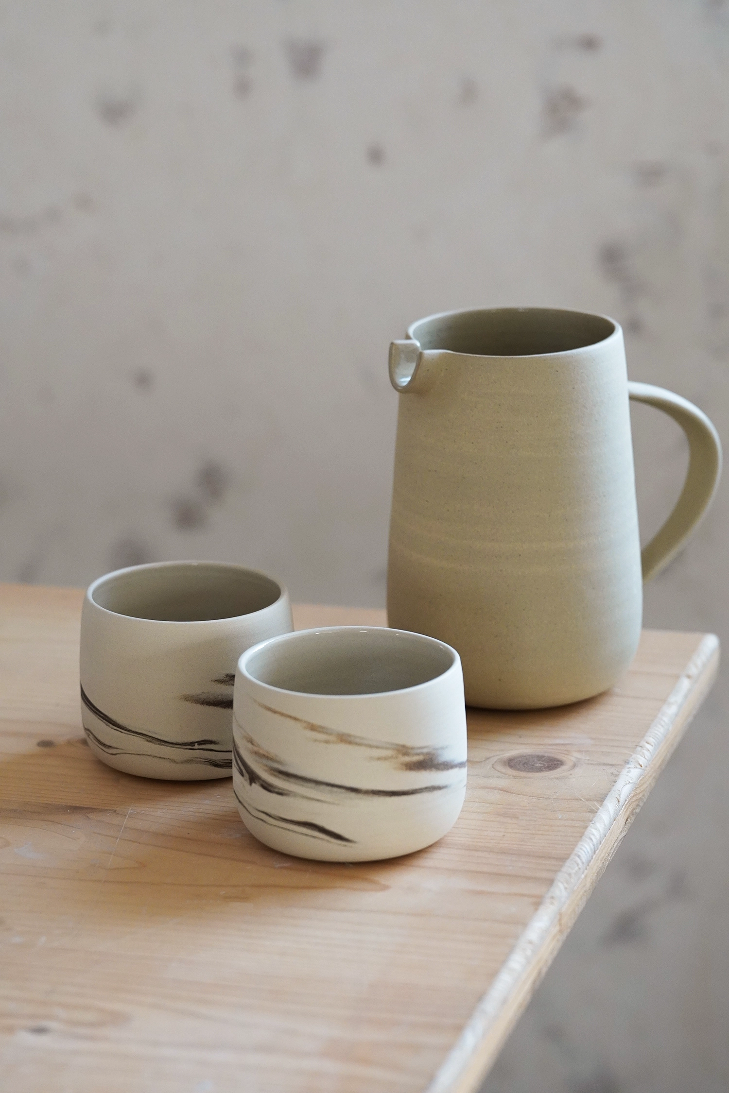 Chaque objet qui sort de mon atelier est fabriqué à la main et avec le plus grand des soins, dans un grès de qualité généralement allemand ou français. Les pièces sont cuites deux fois à plus de 1250 degrés pour leur conférer toute leur solidité et leur permettre de traverser les générations.